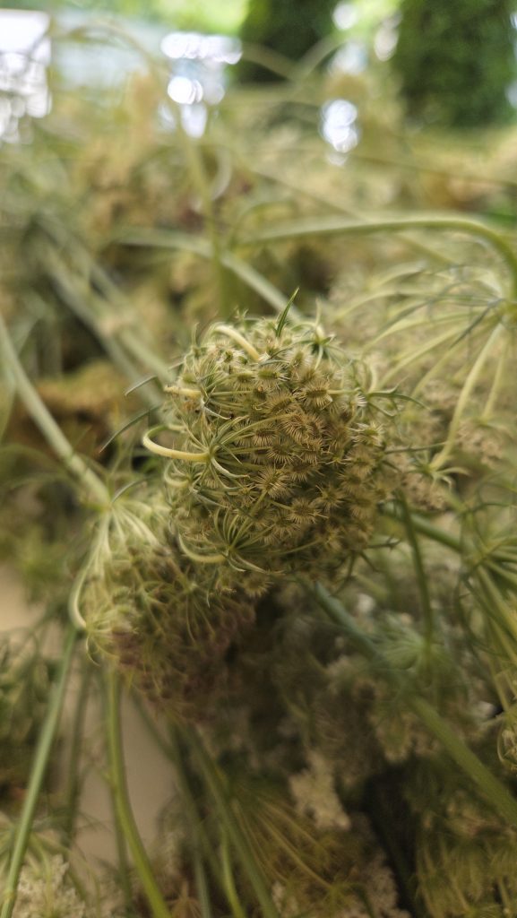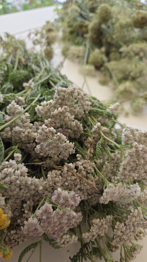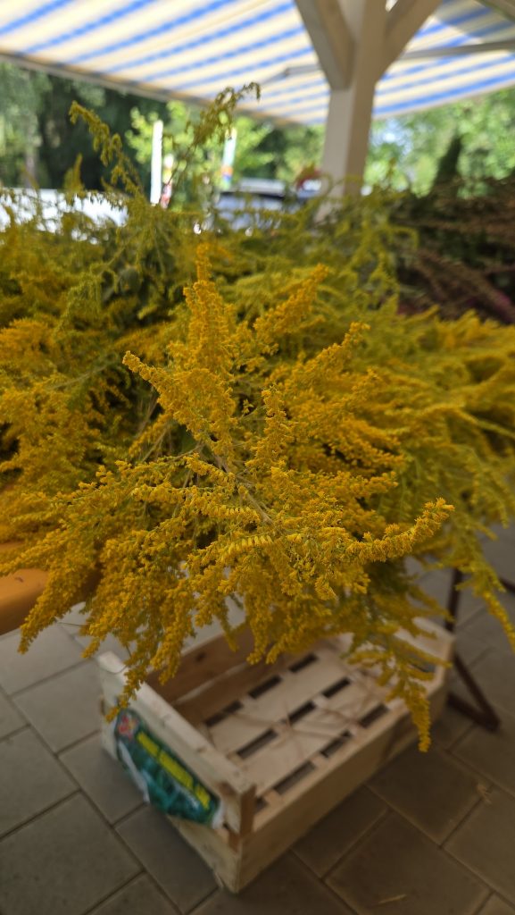 Und diese Kräuter sind in den Kräuterbüscheln, zusammen mit frischen Blumen und Getreideehren, zu finden.